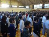 始業式では、壇上からみんなで1枚。校歌もとてもよく響きました。