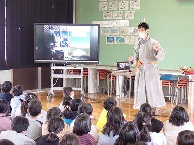2年生の国語『スーホの白い馬』の学習として、馬頭琴演奏者の先生が来校しました。