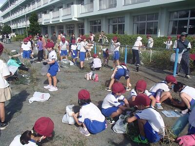 教職員、後援会、学童クラブ、学校開放団体、保護者、地域の皆様、そしてたくさんの子供たちの協力の下、学校の花壇の整備や樹木剪定を行いました。
