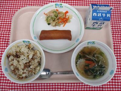 チャーハン 牛乳 春巻き 棒棒鶏サラダ 中華スープ