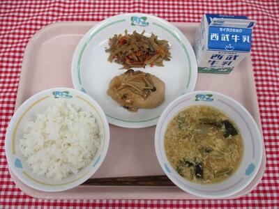 ご飯 牛乳 ハンバーグのきのこソースかけ きんぴらごぼう かきたま汁
