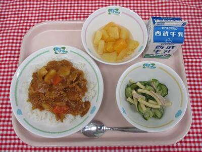 麦ご飯 牛乳 ポークカレー フレンチマカロニサラダ フルーツポンチ