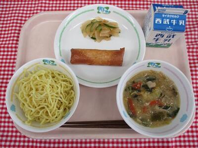中華麺 牛乳 味噌ラーメン 春巻き ピリ辛大根