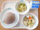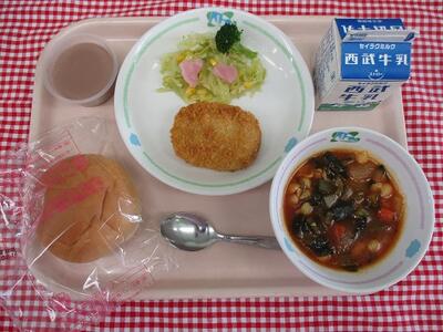 子供パン 牛乳 コロッケ バレンタインサラダ ミネストローネ ココアプリン